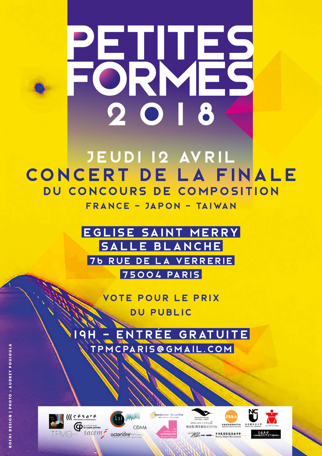 The Finale concert will take place on 12th April at the Centre Culturel de Taiwan à Paris – 78 rue de l’Université, 75007 Paris, to reward the 6 laureats; the Audience Prize will be awarded during the evening.
